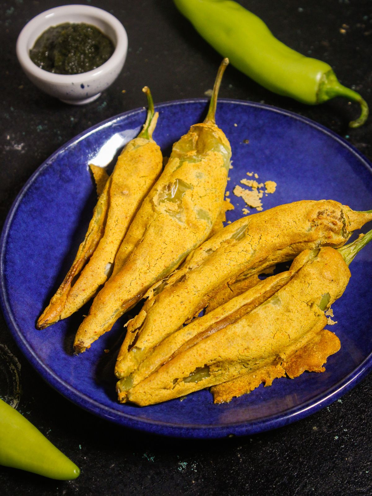 - Serve the Bhajji chilies hot with green chutney as a snack.