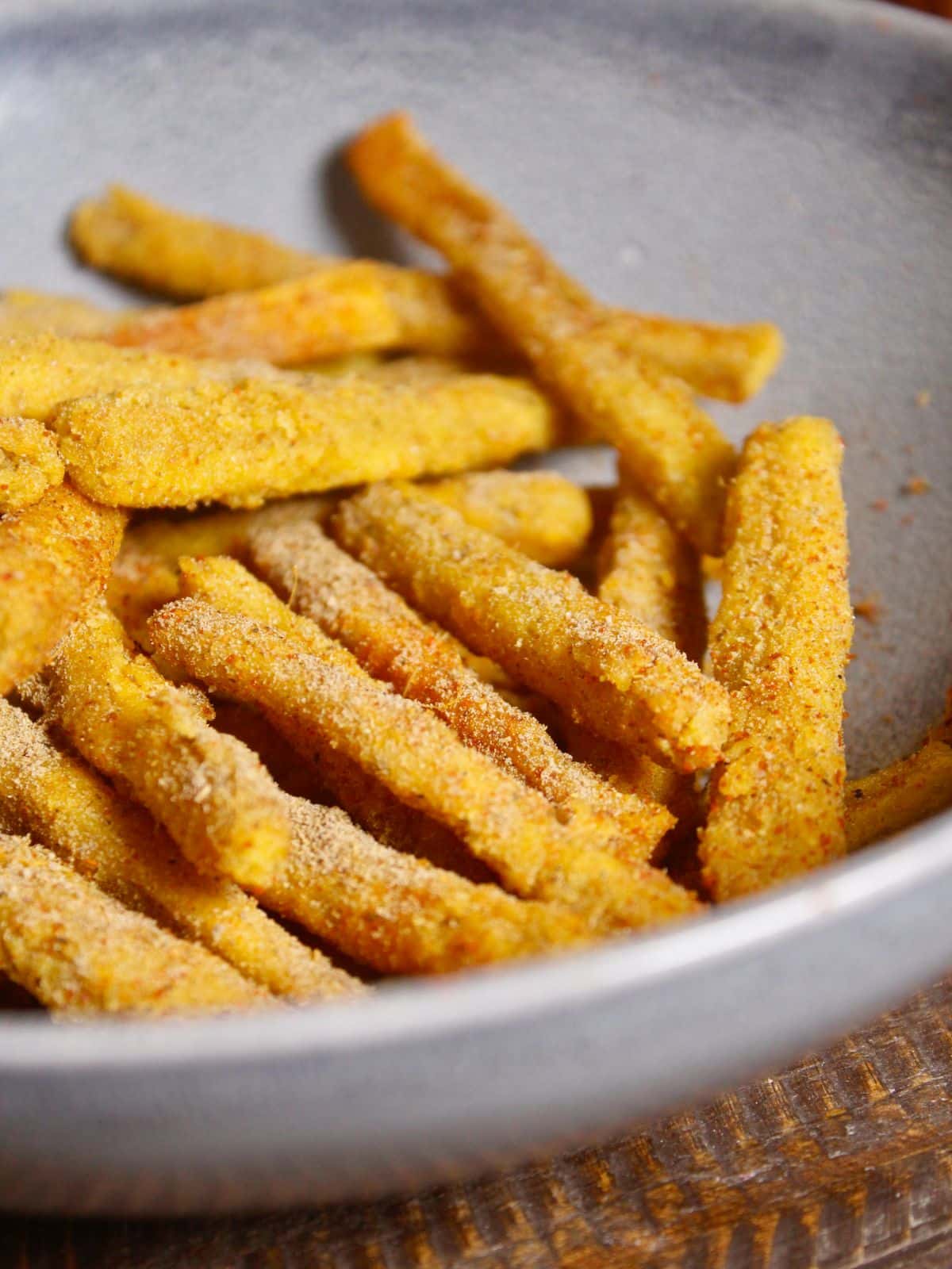 - If you want to enjoy some extra crunchiness, you can cut the banana stems in small, thin strips instead of batons.
