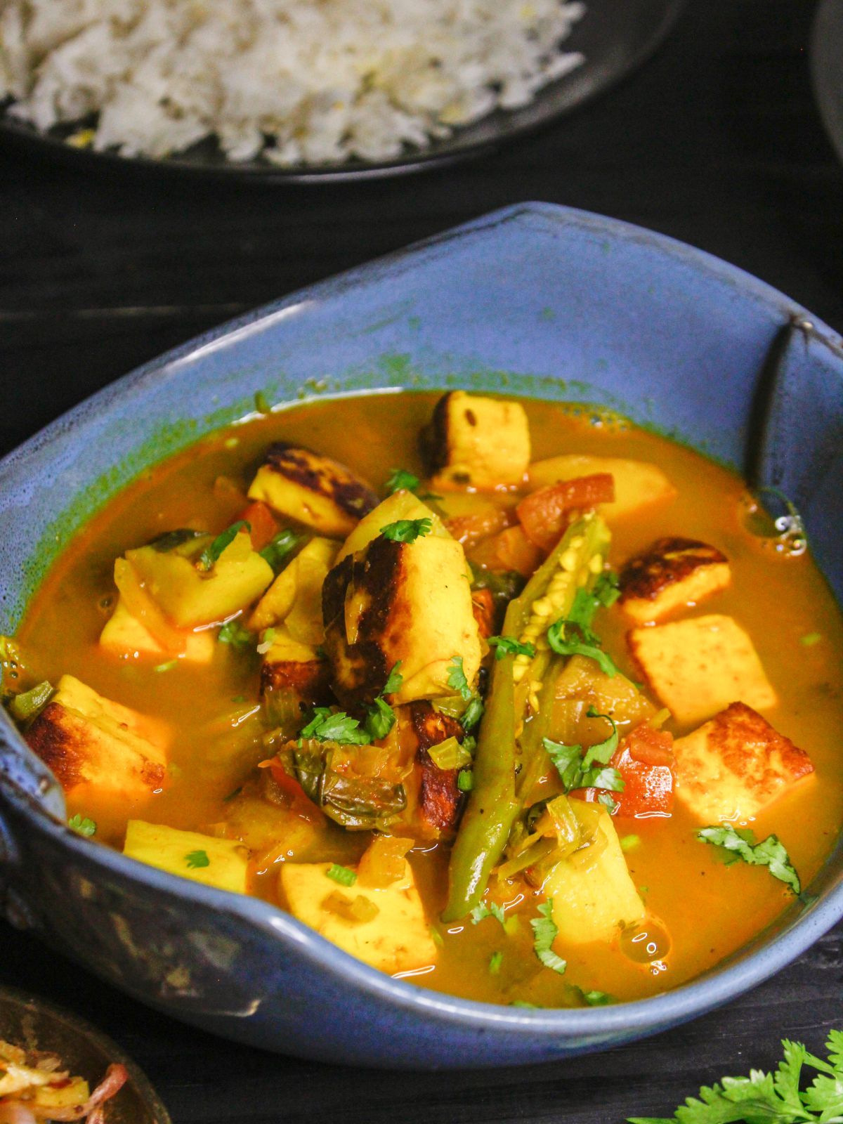 Want to enjoy the classic aloo paneer but with a bit of something different? You can throw in some peas, sliced mushrooms, green beans, bell peppers or even chopped spinach into the gravy.