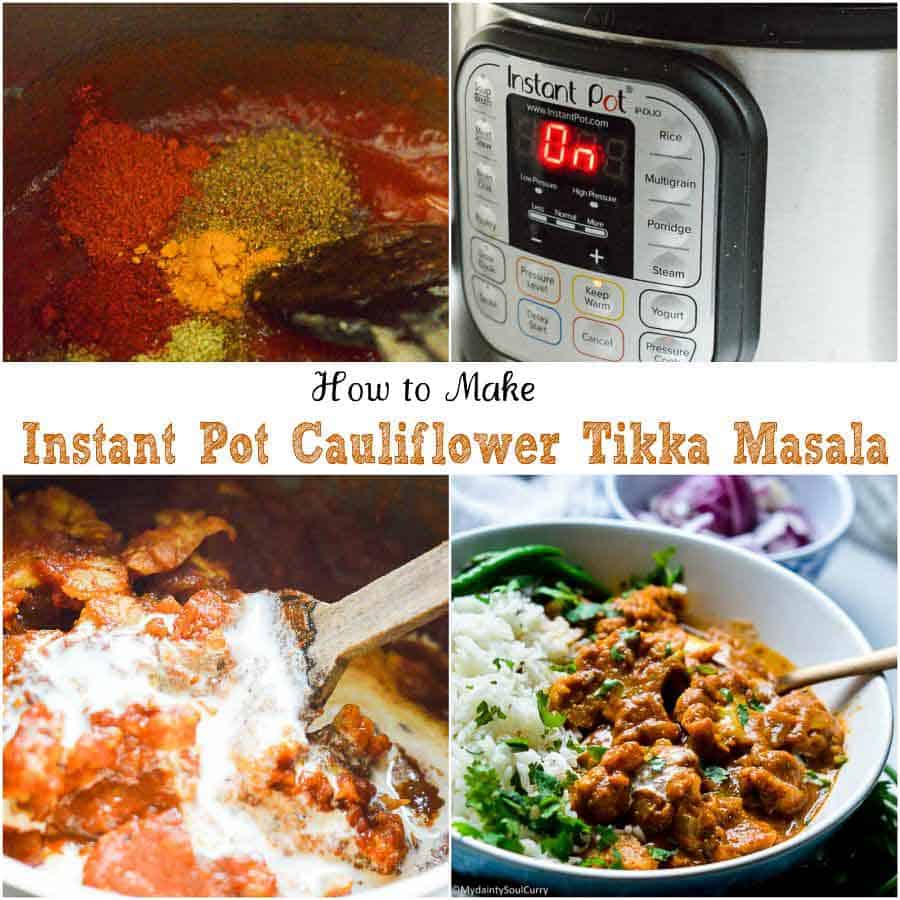 It’s quick to cook almost anything in an instant pot. Just sauté all the ingredients, add tomatoes and spices. Add in cauliflower tikka and cook. That simple!