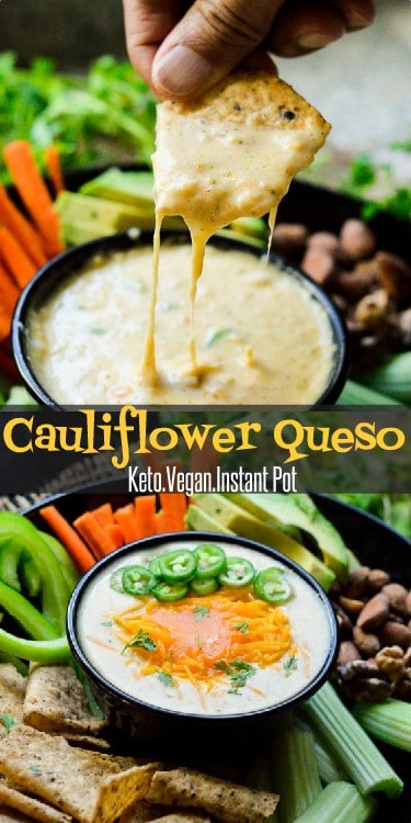Instant pot Keto cauliflower queso, which is vegan, keto, super creamy, cheesy, and delicious. And it takes less than 15-minutes from start to finish for making this cauliflower queso dip.