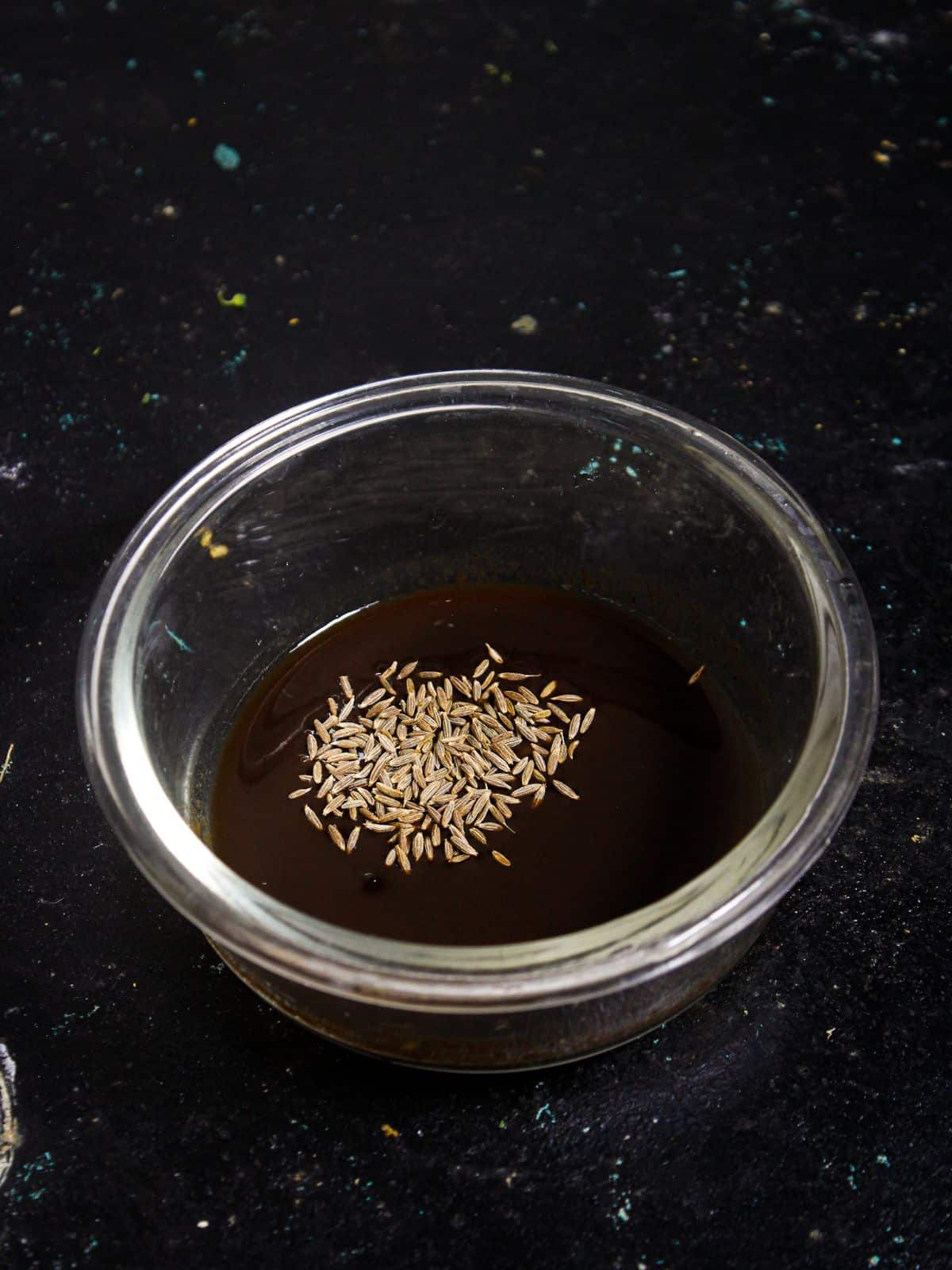 - In a bowl, add the tamarind paste and cumin seeds. Mix them.