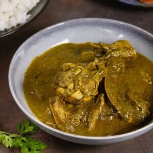 The distinct green color you’d find in this creamy and rich curry comes from the spinach and coriander leaves, which add a nice bit of freshness to the dish.