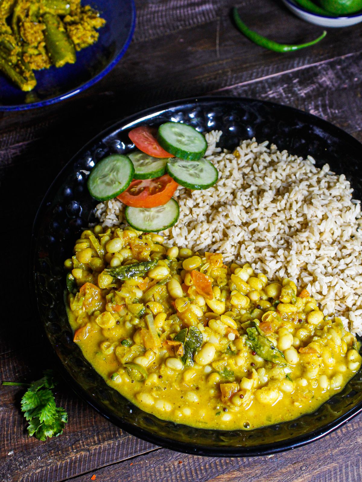 Soft and tender soyabeans swimming in a flavorful curry base and served with brown rice- that’s what this soybean curry dish is all about. This is a unique and delicious take on the classic Indian curry, and is an excellent healthy meal to whip up any day of the week.