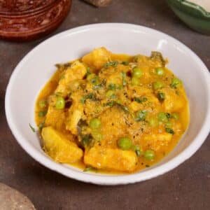 This easy yam curry with green peas is a healthy and nutritious meal that you can enjoy for lunch or dinner. The curry is a robust, flavorful curry and packs in a protein punch from the peas and tons of nutrients from the yams.